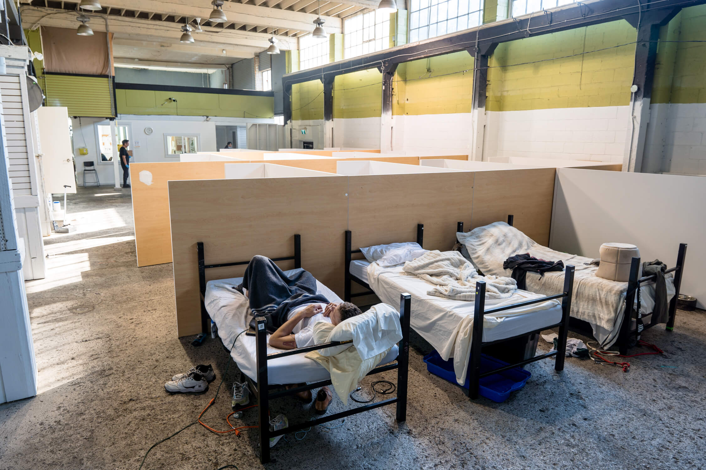 The shelter offers 40 beds and is operated 24 hours, 7 days a week. The shelter follows the organization’s mandate of providing inclusive housing and, as such, is a space for persons and their animal companions on a leash or in a cage. Carts and backpacks are also allowed. Three meals per day are provided.